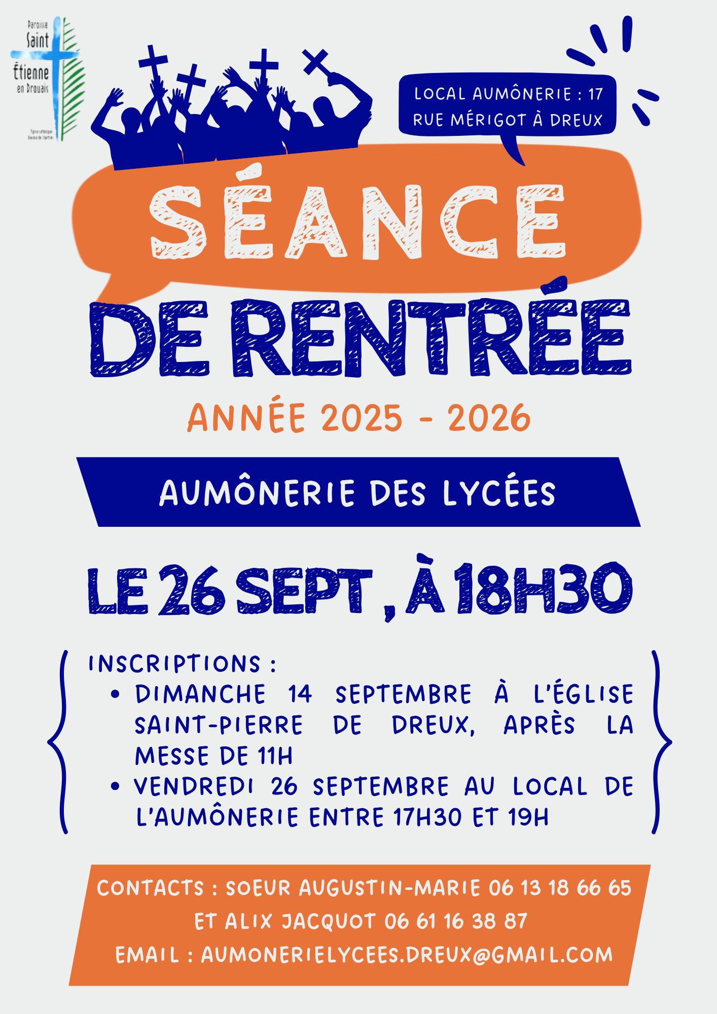 Toutes les informations de la paroisse disponibles en temps réel grâce au groupe WhatsApp : Nos actualités Découvrez nos églises Vous avez des questions ? Contactez nous ! Notre équipe est disponible les mardi, jeudi, vendredi et samedi de 10h00 à 12h00 (hors vacances scolaires) 15 rue Mérigot, 28100 Dreux 02 37 15 81 97